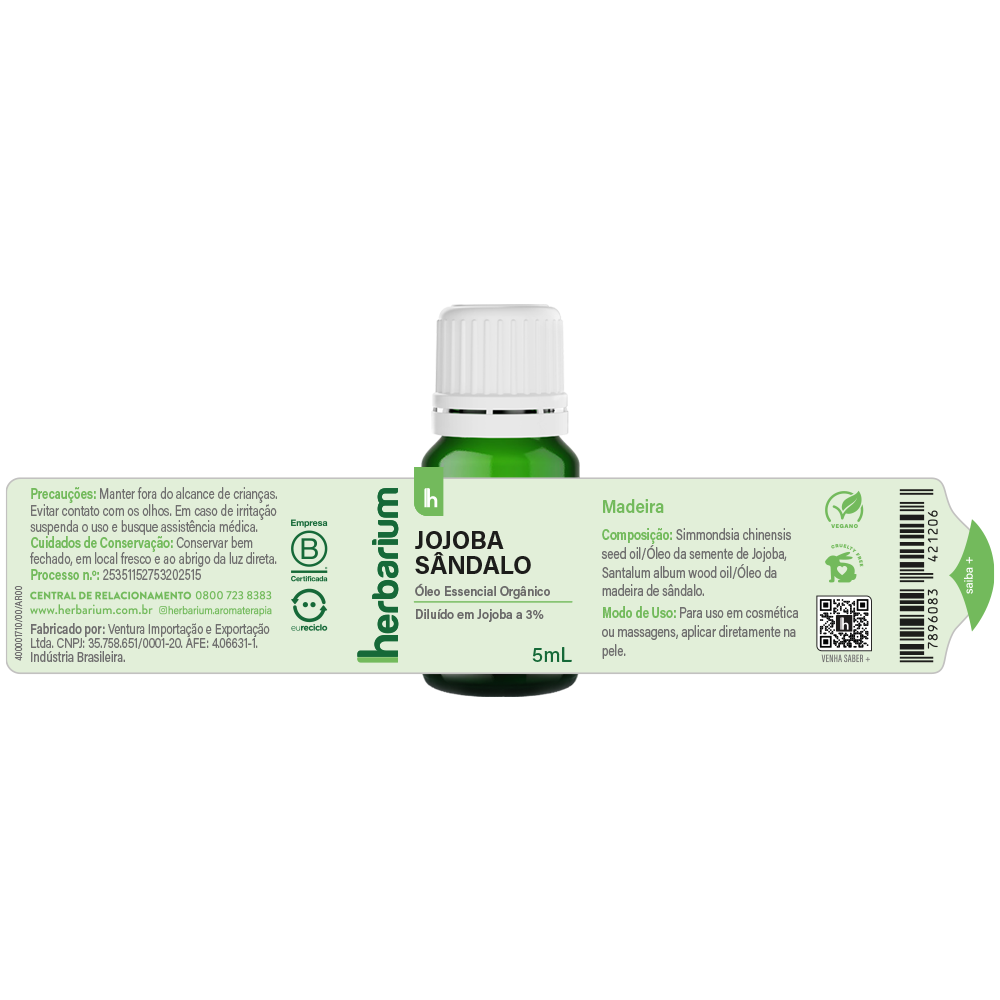 A combinação do óleo essencial de Sândalo Indiano com o óleo vegetal de Jojoba cria um cuidado profundamente equilibrante, que une o toque meditativo da madeira sagrada à leveza e compatibilidade natural da Jojoba.