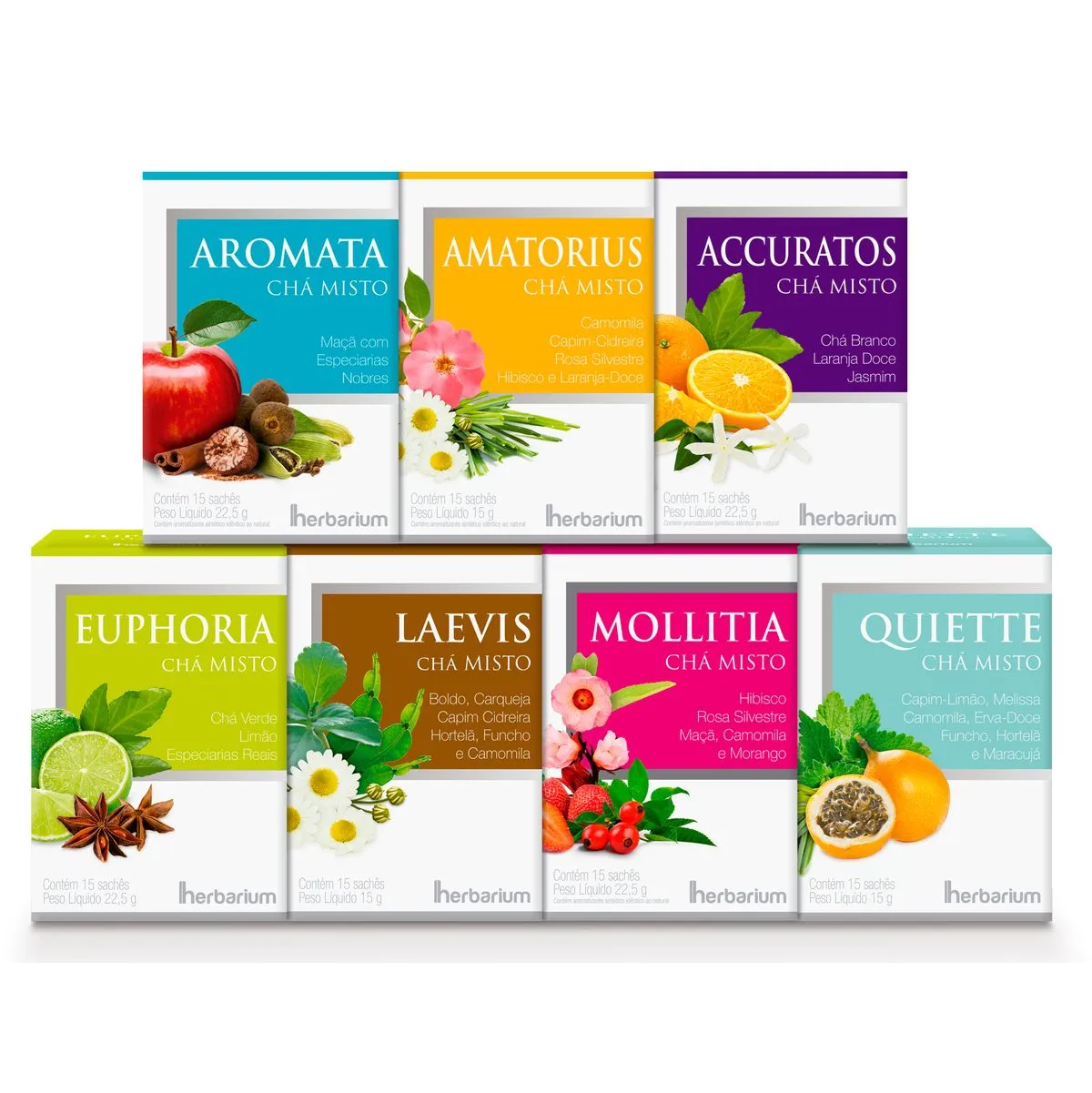 Quiette: combinação de Capim-limão, Erva-doce e Maracujá. Leve e calmante, ideal para relaxar ou consumir à noite.