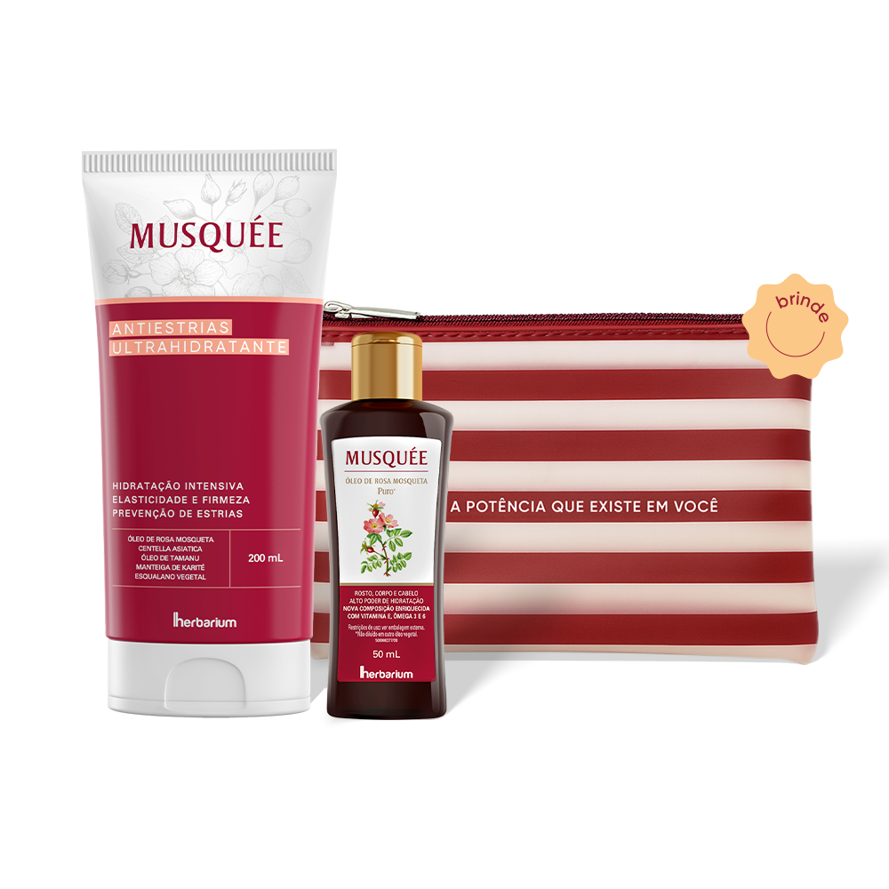 Cuidado e nutrição em todas as fases da maternidade. Restaura a firmeza, melhora a elasticidade e mantém a pele intensamente hidratada, macia e radiante. Na compra do Kit, ganhe uma necessaira Musquée.
