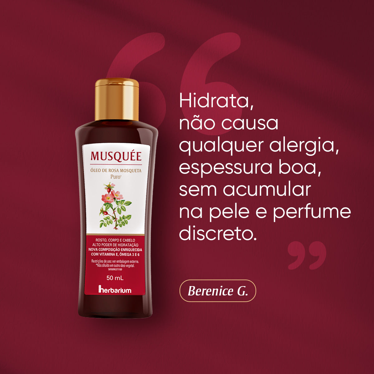 O Óleo de Rosa Mosqueta Rubiginosa 50ml é um poderoso aliado no cuidado da pele, especialmente indicado para regeneração, hidratação profunda e melhora da firmeza. Rico em ácidos graxos essenciais e vitamina A natural, ele estimula a produção de colágeno, suaviza marcas e melhora a elasticidade da pele.