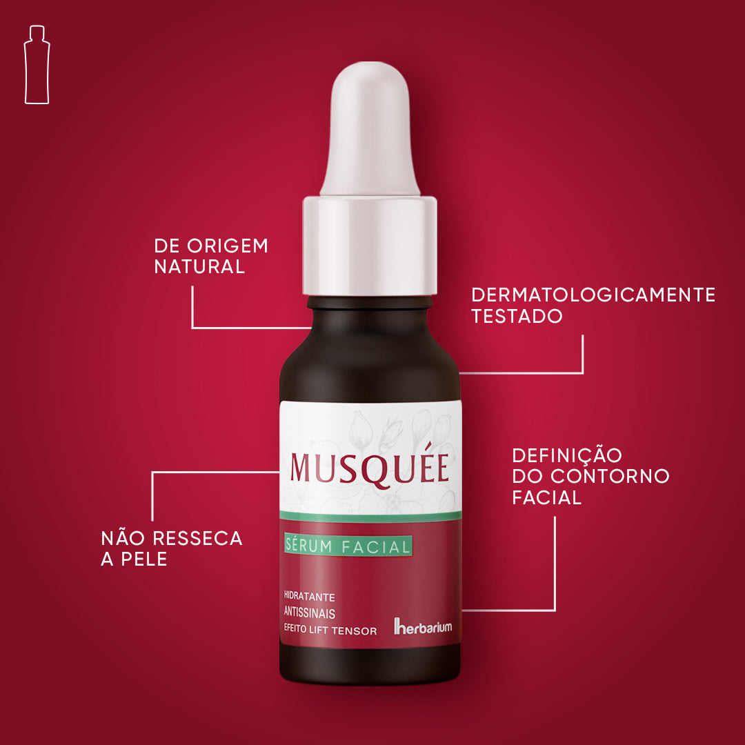 Aplique algumas gotas na pele limpa e seca. Quatro gotas costumam ser suficiente para cobertura total do rosto. Espalhe o produto com movimentos circulares até sua completa absorção. Musquée Sérum Facial possui textura leve, proporcionando uma sensação refrescante e rápida absorção. Dica: durante a aplicação, massageie o rosto de baixo para cima, favorecendo dessa forma a sustentação e o contorno da face, do pescoço e do colo. Utilize diariamente antes de dormir e ao acordar. Lembre-se de aplicar antes do protetor solar ou da maquiagem. Reaplique sempre que desejar!