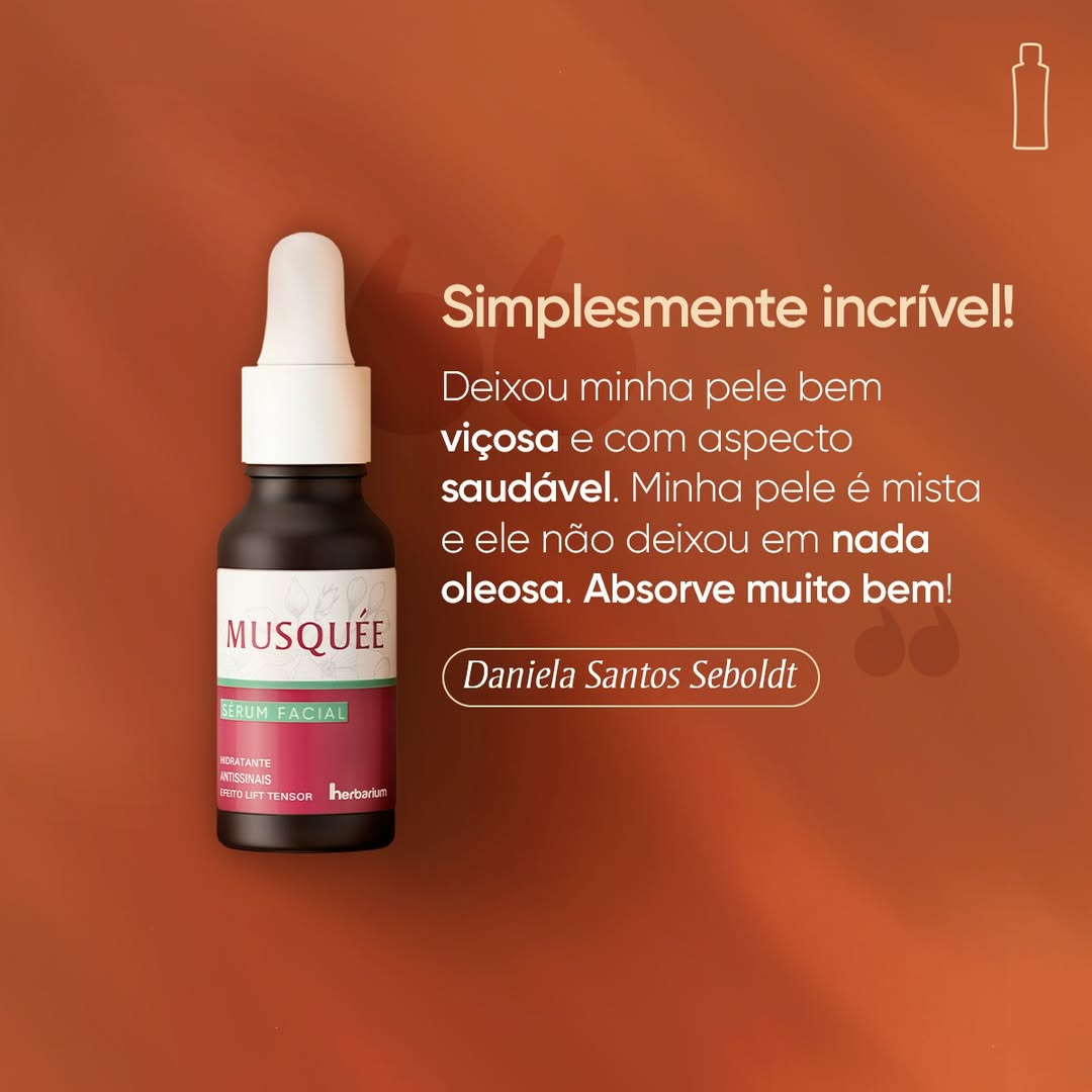 Musquée Sérum Facial é o parceiro perfeito para uma pele mais firme e radiante. Além de um incrível efeito lift tensor logo após o uso, também realça o viço natural da pele e suaviza linhas de expressão e rugas em apenas 3 semanas*.