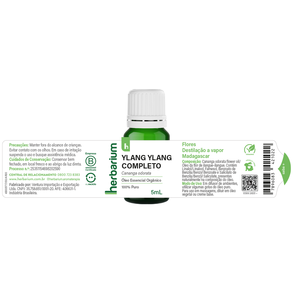 Flor do prazer, perfume da presença. Colhido nas ilhas tropicais do Oceano Índico, o Ylang Ylang é extraído das flores da Cananga odorata por destilação lenta e cuidadosa. A versão completa inclui todas as frações da destilação, resultando em um óleo essencial profundamente floral, doce e exótico — com notas intensas que tocam corpo e alma.
